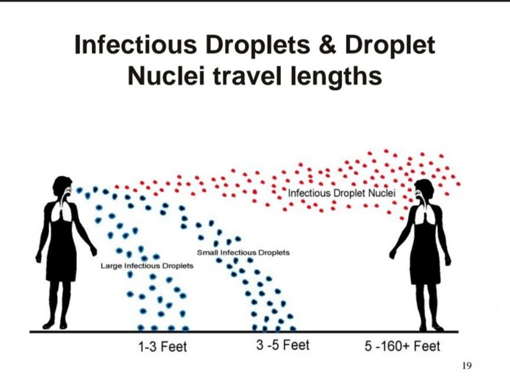 Gotitas infecciosas y longitudes de viaje de núcleos de gotitas